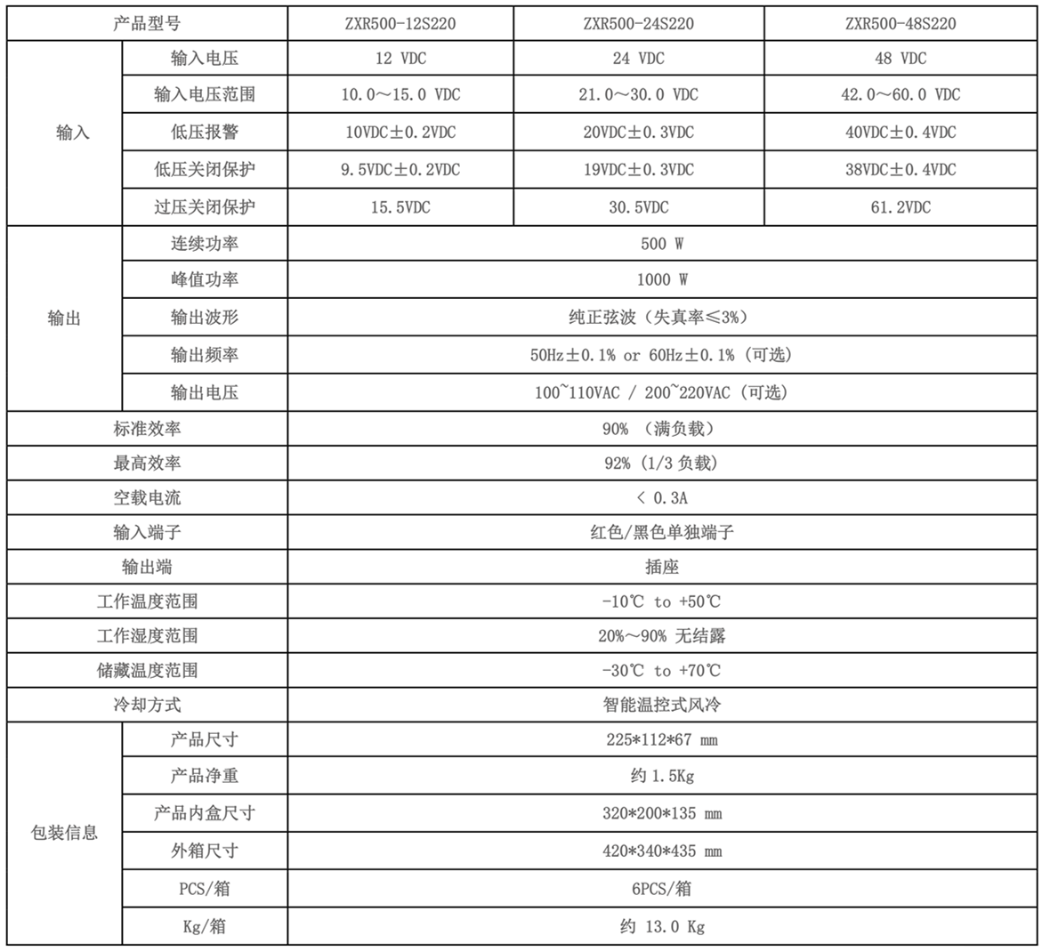 規格型號:ZXR500-48S220