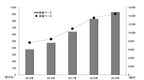 用戶通常都是在遠(yuǎn)離電源的場(chǎng)合使用移動(dòng)設(shè)備如玩游戲、看視頻、發(fā)微信等,需要隨時(shí)隨處頻繁為移動(dòng)設(shè)備充電,這種需求促進(jìn)移動(dòng)電源市場(chǎng)的增長(zhǎng)。根據(jù)有關(guān)市場(chǎng)調(diào)研機(jī)構(gòu)的預(yù)測(cè),移動(dòng)電源的出貨量將從2016年的不到5億只增加到2019年的超過(guò)9億只,從而使得市場(chǎng)年均增長(zhǎng)率高達(dá)17.5%。TMR最新研究報(bào)告指出,預(yù)計(jì)到2022年,全球移動(dòng)電源市場(chǎng)規(guī)模將超過(guò)361億美元,2014-2022期間年復(fù)合增率高達(dá)25.9%。
