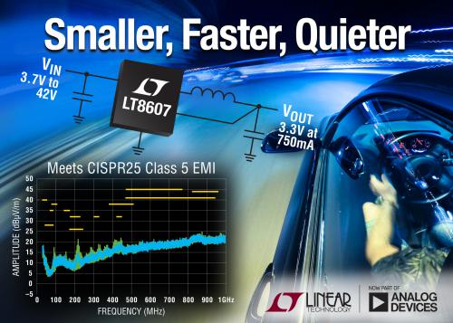 ADI推出 750mA、42V 輸入同步降壓型開關穩壓器 LT8607