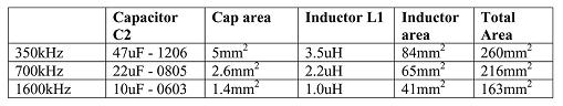 表格3顯示了感應(yīng)器和電容器的數(shù)值,以及PCB所需板面面積