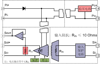 信號調理的三隔離指的是:信號的輸入和輸出之間隔離;電源的輸入和輸出之間隔離;信號通道和電源通道之間隔離。如圖 2所示。