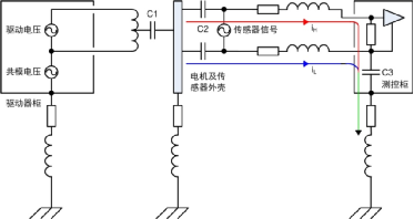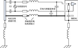 4)此處電機平臺和測控柜已有接地,通過傳感器連接線屏蔽層又將兩者連接,形成地環(huán)路。然而實際工程應(yīng)用中地環(huán)路往往不可避免地存在,本例中若沒有屏蔽層依然會通過C2、電纜和C3產(chǎn)生高頻地環(huán)路,從這方面看屏蔽層改變了環(huán)路路徑。