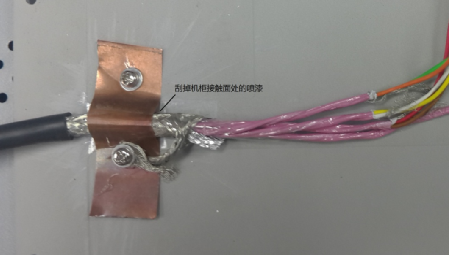1)通過寬大的屏蔽層對高頻信號呈現(xiàn)較低的阻抗,減少電機平臺和測控柜的地電勢差,干擾電流通過較低阻抗的屏蔽層泄放到測控柜,而不是走信號線。