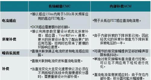 表1.傳統峰值電流模式和內部補償式ACM的比較