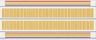 電阻器和電容器等元件的引線插入孔中。每組五個孔通過下面的金屬條連接形成一個節點。節點是電路中兩個或多個元件連接的點。可通過將元件引線插入共同節點來實現元件之間的連接。試驗板頂部和底部用紅色和藍色條紋表示的一長排孔用于電源連接。插入元件并用跳線連接在一起便可構建電路的其余部分。此類試驗板最好搭配使用實芯線而不是多股絞合線。為方便起見,還提供配有插入式引腳的跳線。